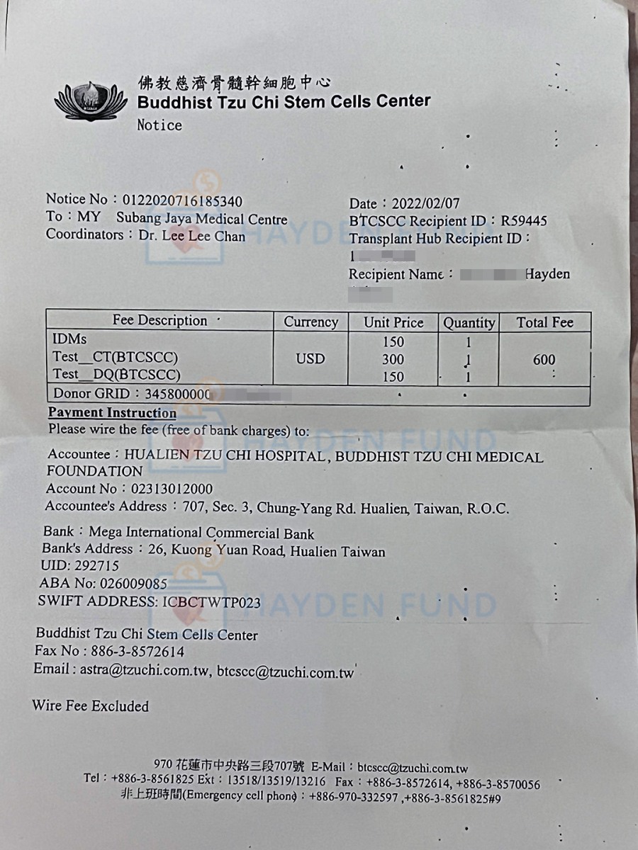 Reports & Receipts This section is a compilation of various test results, payment receipts and invoices and relevant documents. We can’t place them all here as there have been so many tests and payments made, but we’ve included the important ones. Medical Reports Transplant Related Receipts